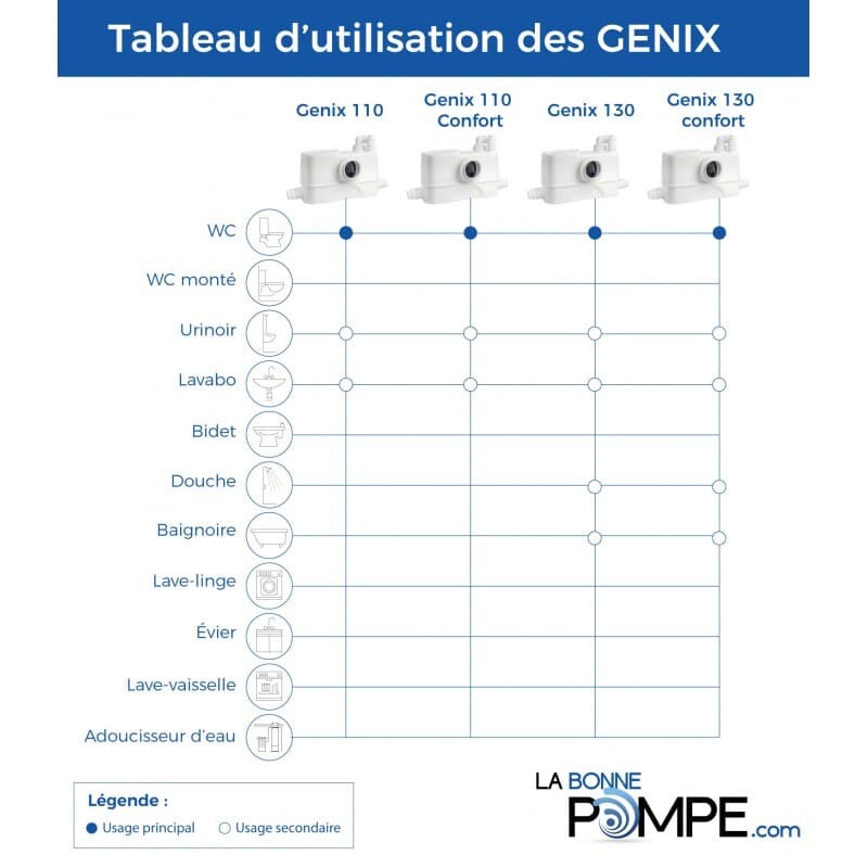 - Utilisation polyvalente : Convient à la collecte et au refoulement des eaux usées provenant d’un WC non suspendu, d’une douche, d’un bidet et d’un lavabo (jusqu’à 4 raccordements au total).