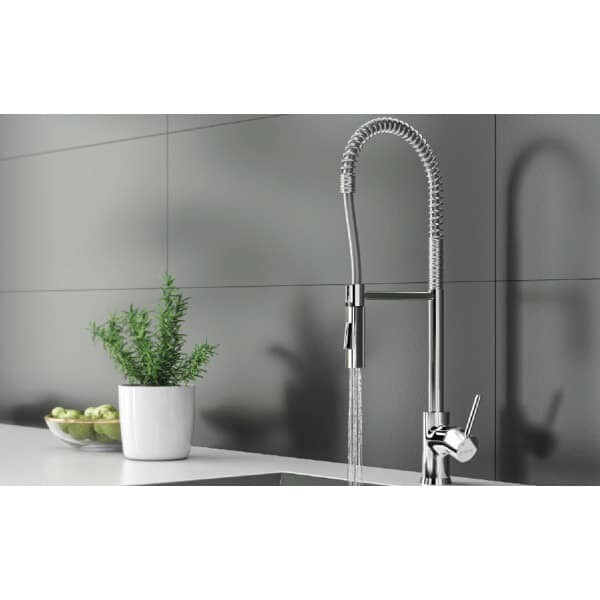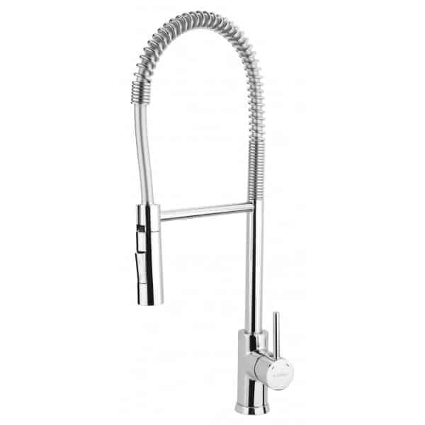 Le Mitigeur Évier Ressort Bizerte 06DMA04 est conçu pour la cuisine professionnelle et domestique, grâce à son bec haut avec ressort flexible et douchette amovible. Il allie la robustesse nécessaire à un usage intensif avec le design moderne de la série Bizerte.