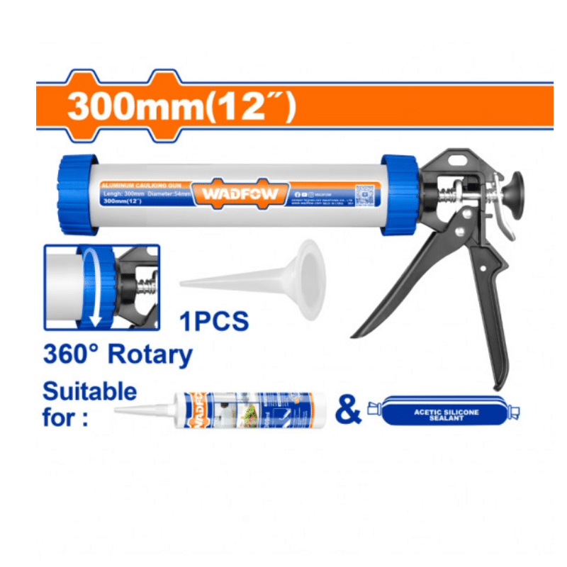 Pistolet Silicone alu Wadfow est un outil robuste et polyvalent conçu pour les professionnels et les amateurs de bricolage. Avec son corps en aluminium de 300 mm (12″), il offre une durabilité exceptionnelle tout en restant léger pour une utilisation prolongée. Sa caractéristique principale est sa poignée rotative à 360°, qui permet une application précise du mastic même dans les angles les plus difficiles d’accès. Ce modèle est parfaitement adapté à l’utilisation de cartouches de silicone standard et de mastics en sachets (type « saucisse »), notamment pour le silicone acétique.