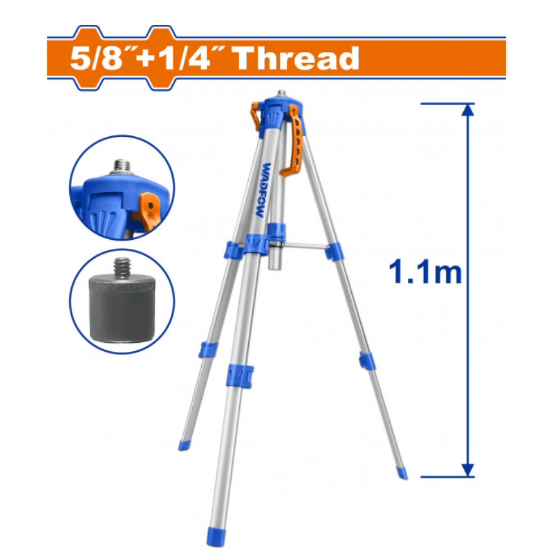 Trépied alu 1,1 m Wadfow est conçu spécifiquement pour supporter les niveaux laser. Sa hauteur maximale de 1.10m le rend idéal pour les travaux d’intérieur et les mises à niveau standards. Il est compatible avec la majorité des outils de mesure grâce à son double filetage 5/8″ et 1/4″, offrant une grande polyvalence.